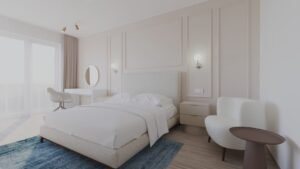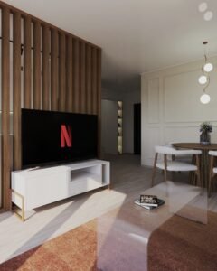 Situat în complexul Maurer Residence din Târgu Mureș, proiectul vizează amenajarea unui apartament cu două camere, conceput pentru a fi implementat și ulterior oferit spre închiriere în regim Airbnb.